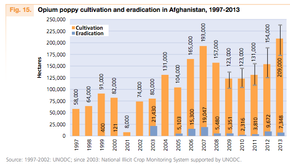 Opium poppy cultivation and eradication, 1997-2013