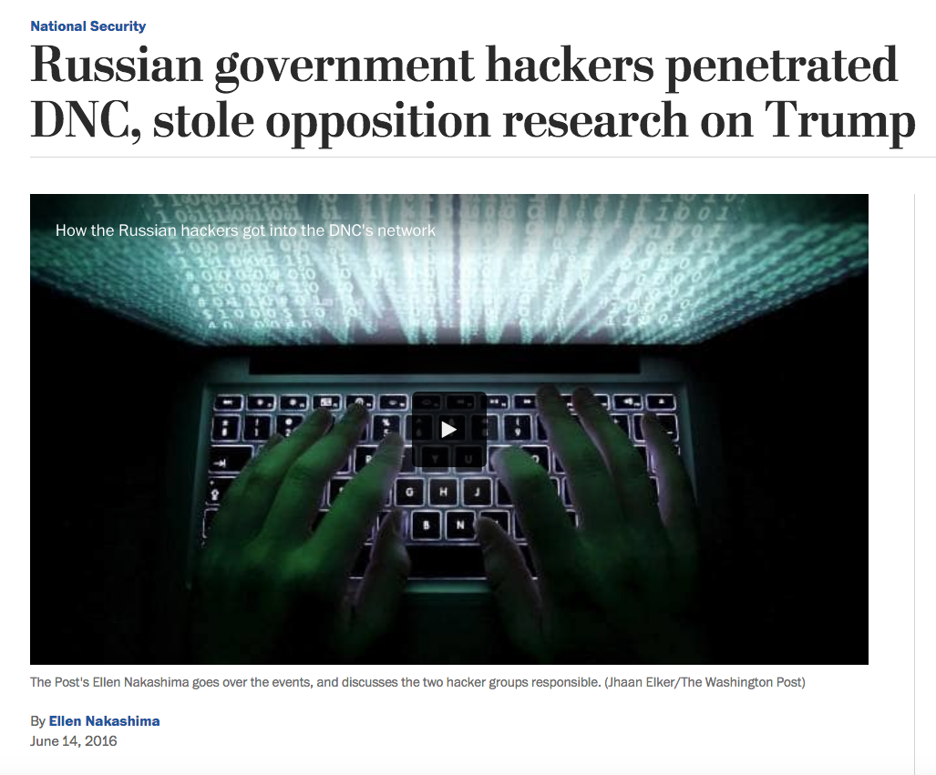 At around 11:35 AM, the Washington Post reported that Russian hackers had hacked the DNC.