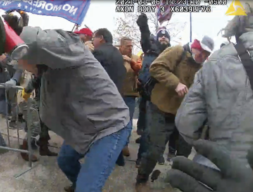 According to the affidavit in support of the criminal complaint, Khater and Tanios were at the U.S. Capitol on Jan. 6, 2021, and were observed in video footage working together to assault law enforcement officers with an unknown chemical substance by spraying officers directly in the face and eyes. During the investigation, it is alleged that law enforcement discovered video that depicted Khater asking Tanios to “give me that bear s*it.” Tanios replied, “Hold on, hold on, not yet, not yet… it’s still early.” Khater then retrieved a canister from Tanios’ backpack and walked through the crowd to within a few steps of the police perimeter. The video shows Khater with his right arm up high in the air, appearing to be holding a canister in his right hand and aiming it at the officers’ direction while moving his right arm from side to side. The complaint affidavit states that Officers Sicknick, Edwards, and Chapman, who were all standing within a few feet of Khater, each reacted to being sprayed in the face. The officers retreated, bringing their hands to their faces and rushing to find water to wash out their eyes.