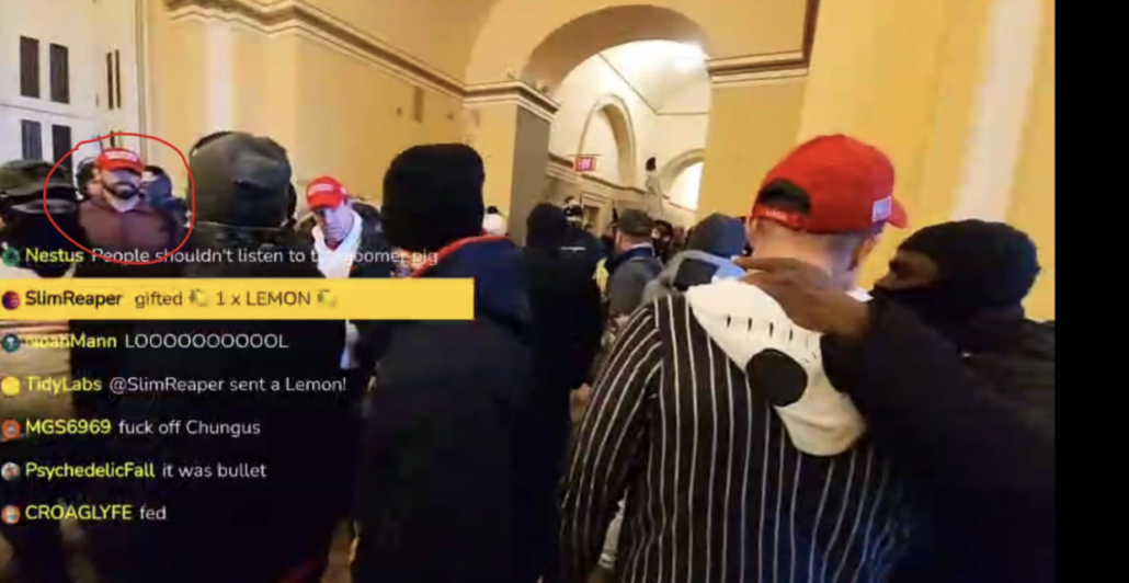 The visual confirmation of Speed’s presence in the Capitol — from a moment when he let down the mask he had gotten on Amazon on December 3 — relies on video that Gionet took (though that’s fairly common).