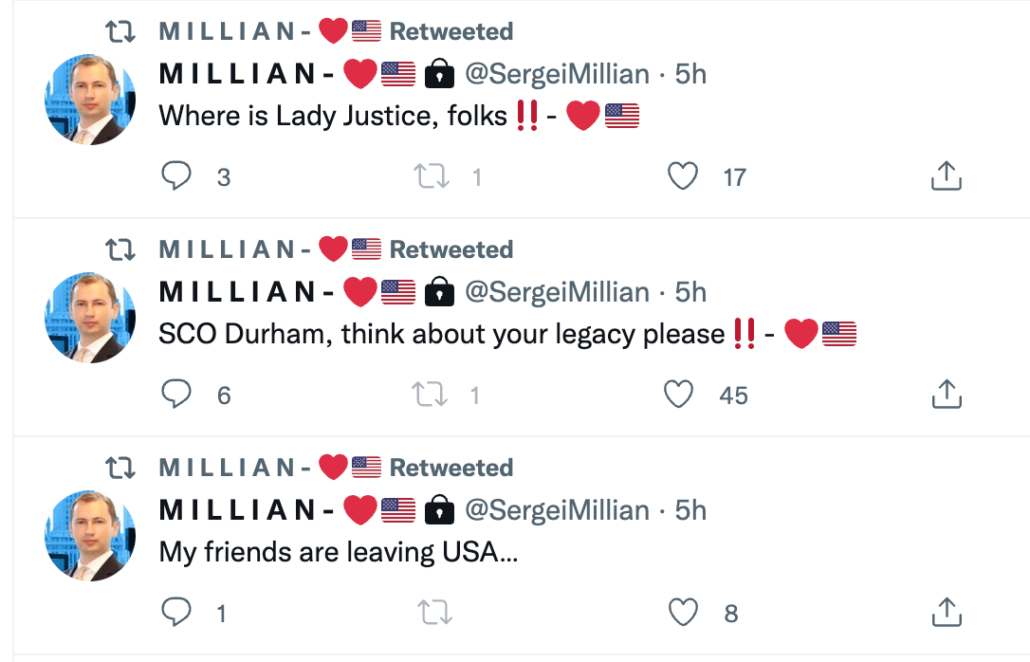 Durham is sane. He is the sole insider remaining to “debunk the Russia Hoax.” Trump and MAGA have done Putin the supreme favor of white-washing what had been a longstanding disinformation campaign by the Kremlin that latched onto Trump’s 2016 campaign because it saw a potent vehicle for the messages of fear and distrust it wished to sow.