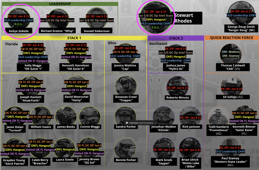 Just as importantly, it would network the conspiracies. That would put all the various Proud Boys taking orders from Tarrio in a conspiracy with those on the FOS list. It would put all the Oath Keepers conspiring with Rhodes and SoRelle in a conspiracy with those on the FOS list.