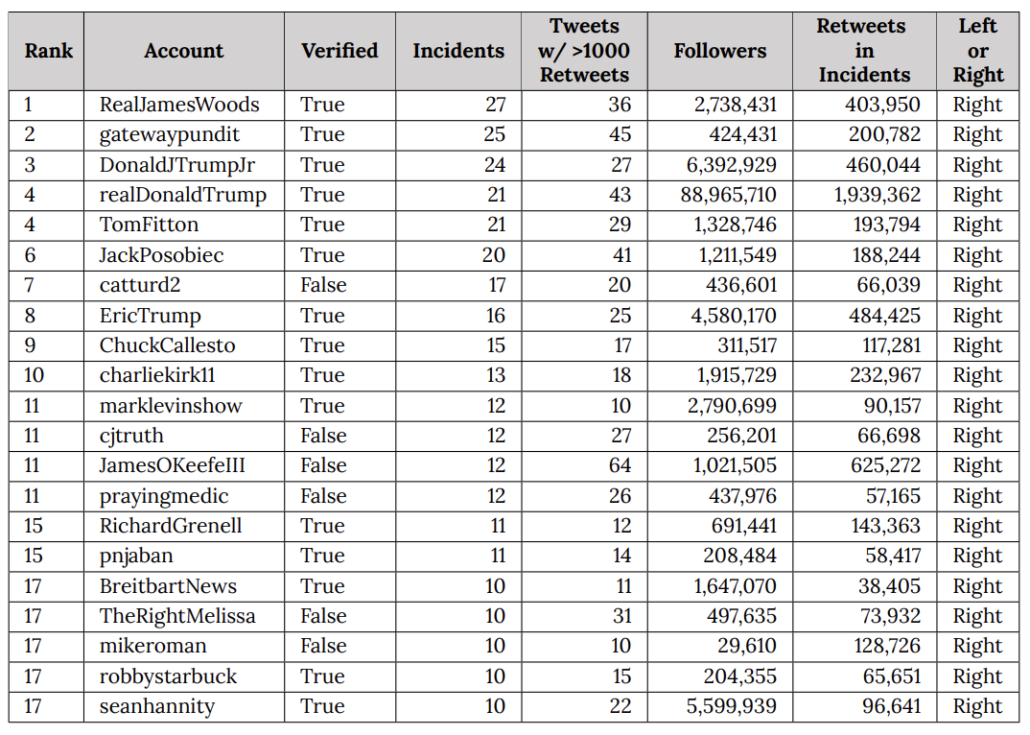 Then it describes how it collected a bunch of data for this historic review. One of three sources of data used in this historic review was Twitter’s API (the other two were original tickets and data from Facebook and Instagram). Starting from a dataset of 859 million tweets pertaining to the election, EIP pulled out nearly 22 million tweets that involved “election incidents” of previously identified mis- or disinformation.
