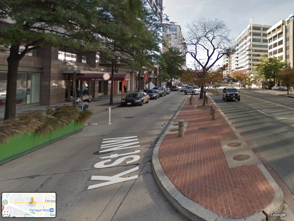 I’m interested in the skis and Dodge’s efforts to retrieve them from storage in the DC area and her follow-up about them on February 8 because one of the things in unallocated space that someone tried to delete — again, per Dimitrelos’s reports — were the February 7, 2019 texts and collision report from a Lyft driver who apologized to “Mr. Biden” for the collision they had had the previous evening, February 6, at roughly this ridiculous part of K Street in Washington DC.