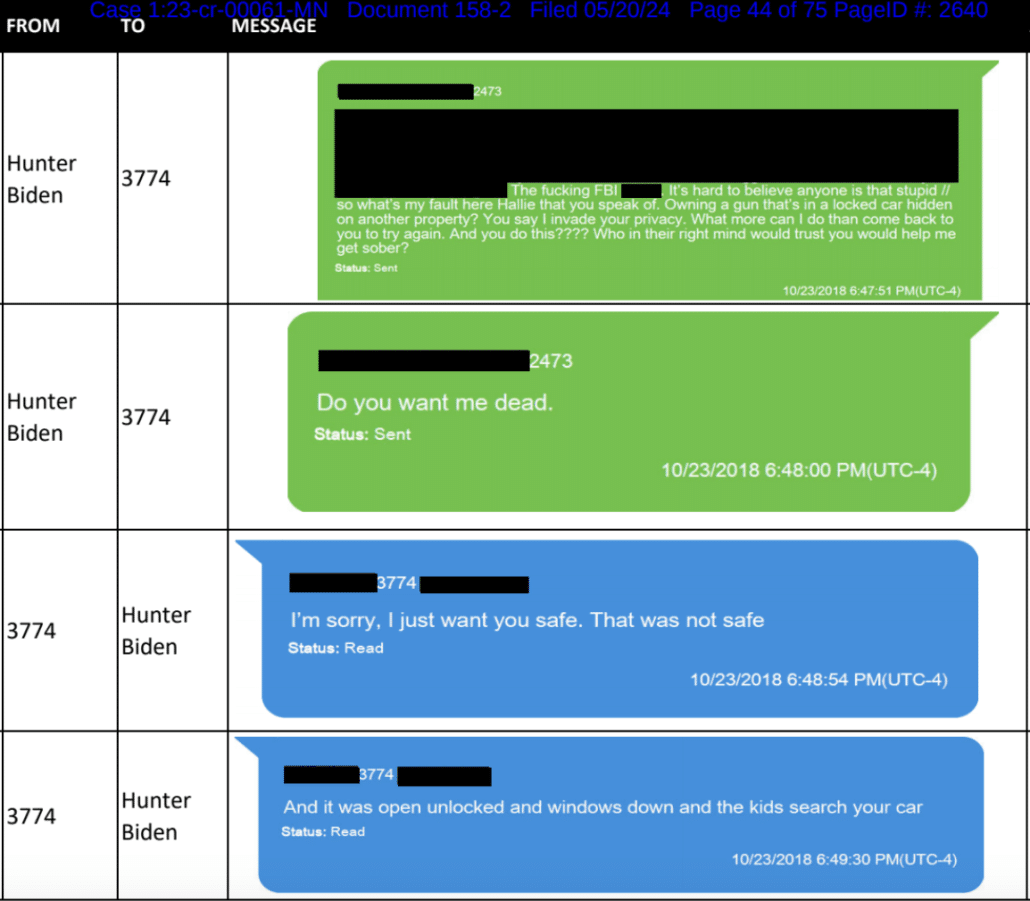 These messages show Hallie’s message have her name saved as “Hallie Biden”. Hunter’s side of the conversation don’t have his name saved, just the digits.