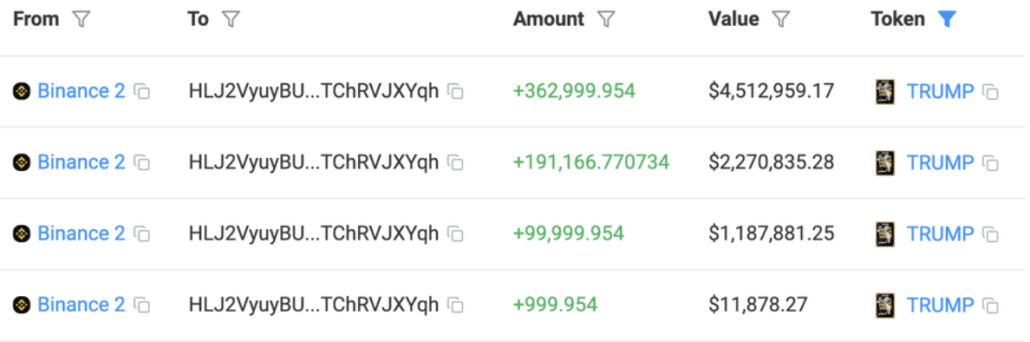 $8 million in $TRUMP purchases, funded by a Binance transfer