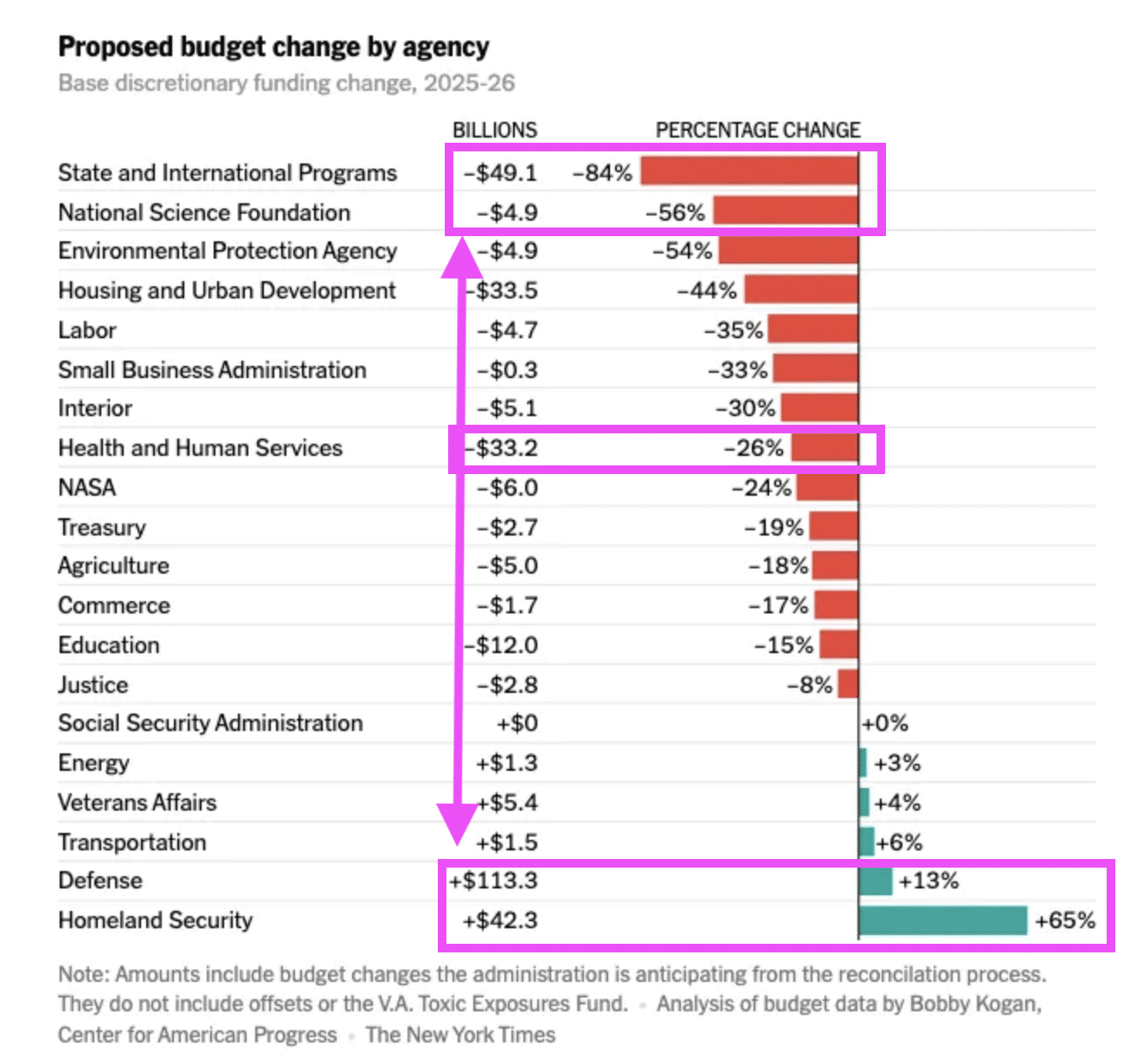 The Budget, which reduces non-defense discretionary by $163 billion or 23 percent from the 2025 enacted level, guts a weaponized deep state while providing historic increases for defense and border security. The Budget also provides support for air and rail safety as well as key infrastructure and our Nation’s veterans and law enforcement.
