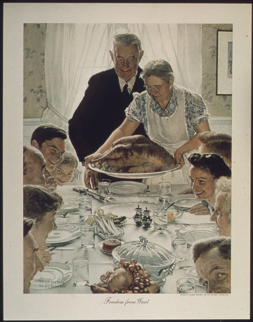 One possible starting place for a future is Franklin Roosevelt’s Four Freedoms. They make a great program, and as the pic on the front page shows, they come with Norman Rockwell images. FDR articulated these ideas in his 1941 State of the Union Address, and expanded on them in his 1944 address:
