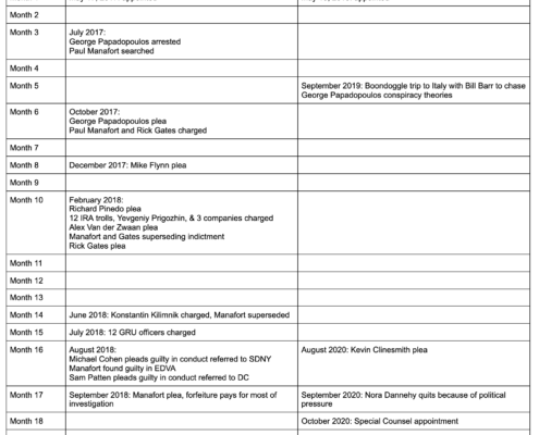 The Russian investigation and its offshoots seems to have ended by September 18, for a total of 1510 days. Meanwhile, the Durham investigation remains ongoing, meaning that the investigations into the Russian investigation have lasted 2557 and still counting.