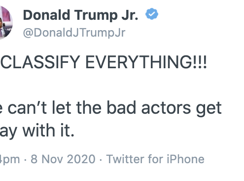 Don Jr might want to stop advertising how happy he is to leak America's secrets given how Julian Assange got advance notice of his indictment.