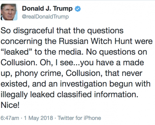 Before the press fact checks Trump's claims that Robert Mueller's questions don't include any addressing "collusion," they might consider how they've been complicit in setting up that narrative.