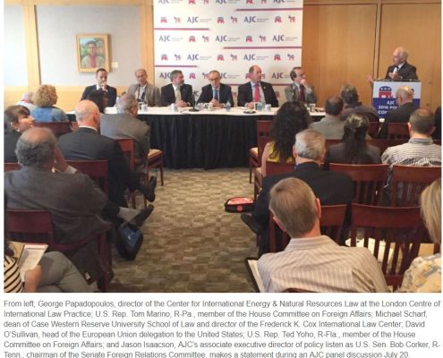 When George Papadopoulos appeared, along with several elected Republicans, on a panel for the American Jewish Committee in Cleveland during the Republican National Convention, he used a cover identity that is associated with one of the organizations also affiliated with Joseph Mifsud. Papadopoulos did not appear to claim association with the Trump campaign during the appearance.