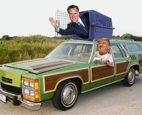 Once upon a time, Mitt Romney exiled his dog, Seamus, to the roof of the family station wagon. Now Trump has Mittens tied to the roof like a dog.