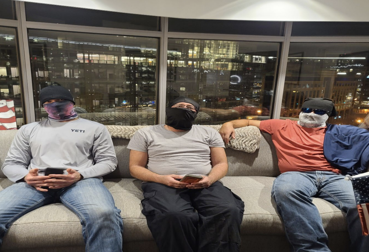 Then later that night, the two men donned masks and told their stories of the day, stories that presumably explain how both came to help rioters amassed on the East side of the building open a second front of attack.