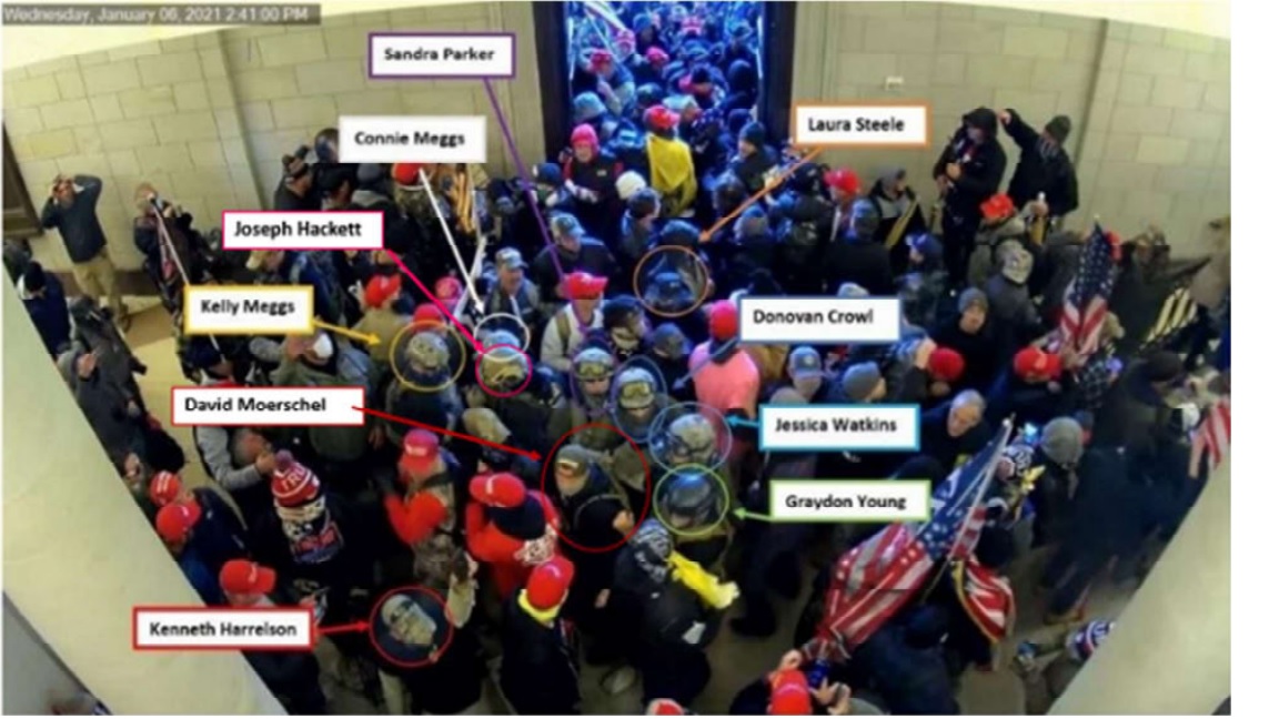 - Kelly Meggs, Jessica Watkins, Kenneth Harrelson, David Moerschel, Edward Vallejo, Joseph Hackett