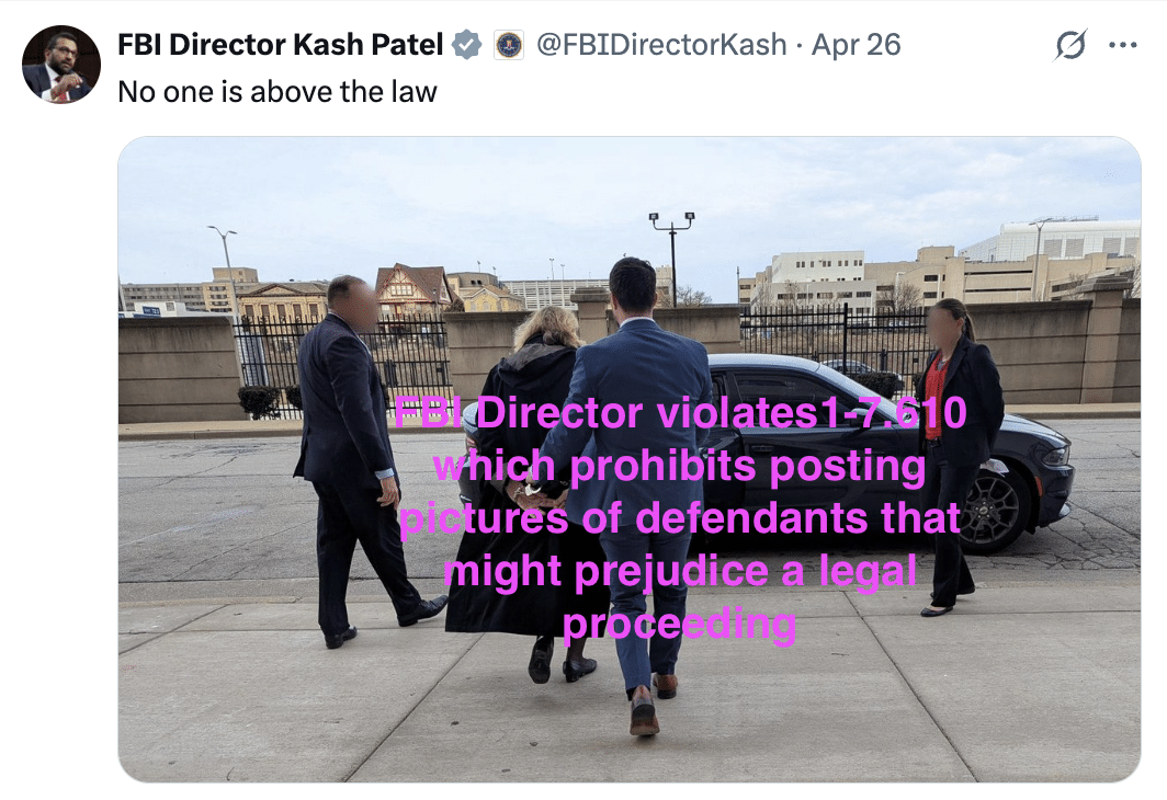 Both Pam Bondi and Stephen Miller also made comments that arguably violate rules prohibiting comments that prejudice a proceeding (remember that Judge Dale Ho already found that Pam Bondi’s public comments about the Eric Adams case likely violated local rules).