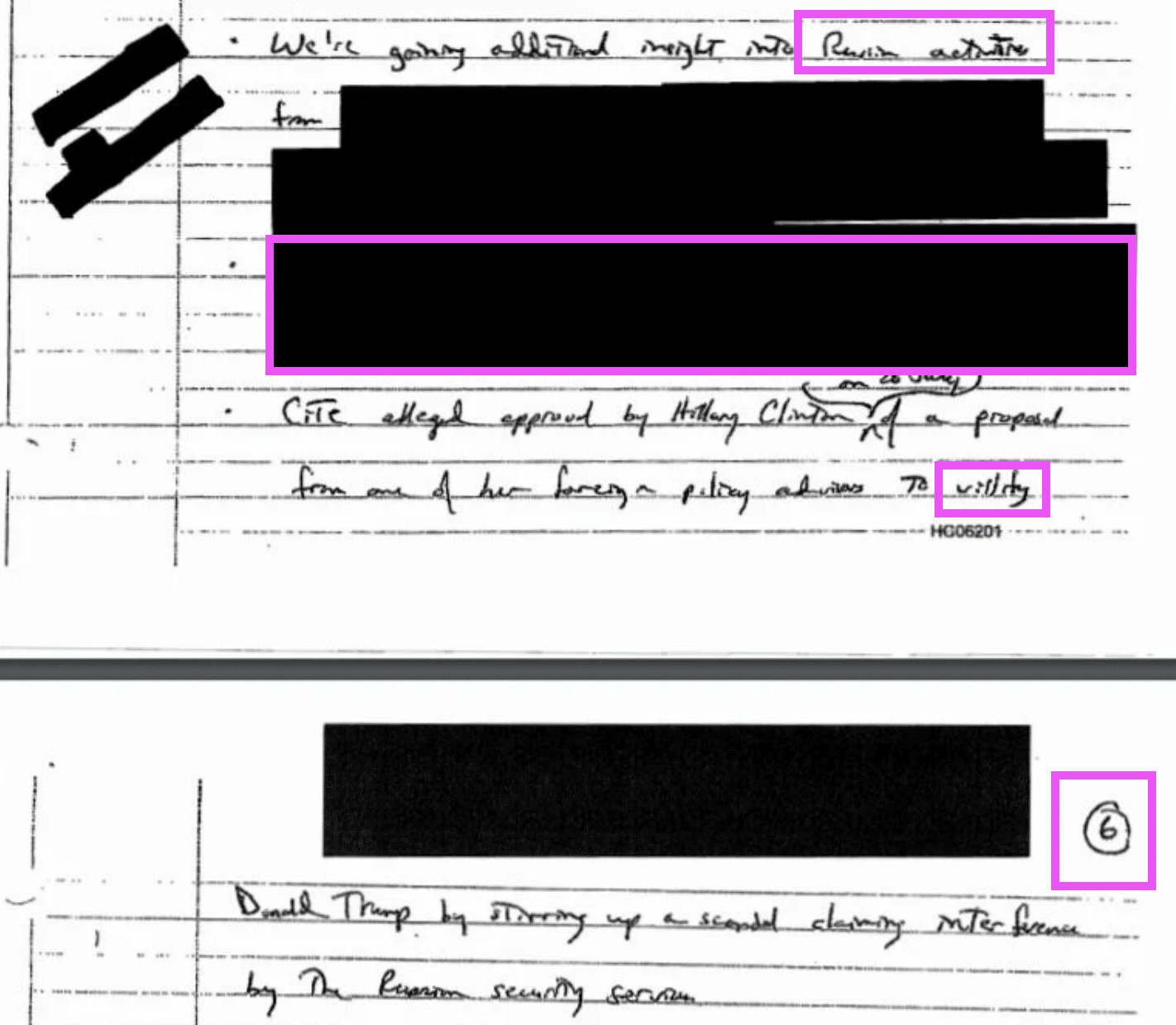 - According to his handwritten notes, CIA Director Brennan subsequently briefed President Obama and other senior national security officials on the intelligence, including the “alleged approval by Hillary Clinton on July 26, 2016 of a proposal from one of her foreign policy advisors to vilify Donald Trump by stirring up a scandal claiming interference by Russian security services.”