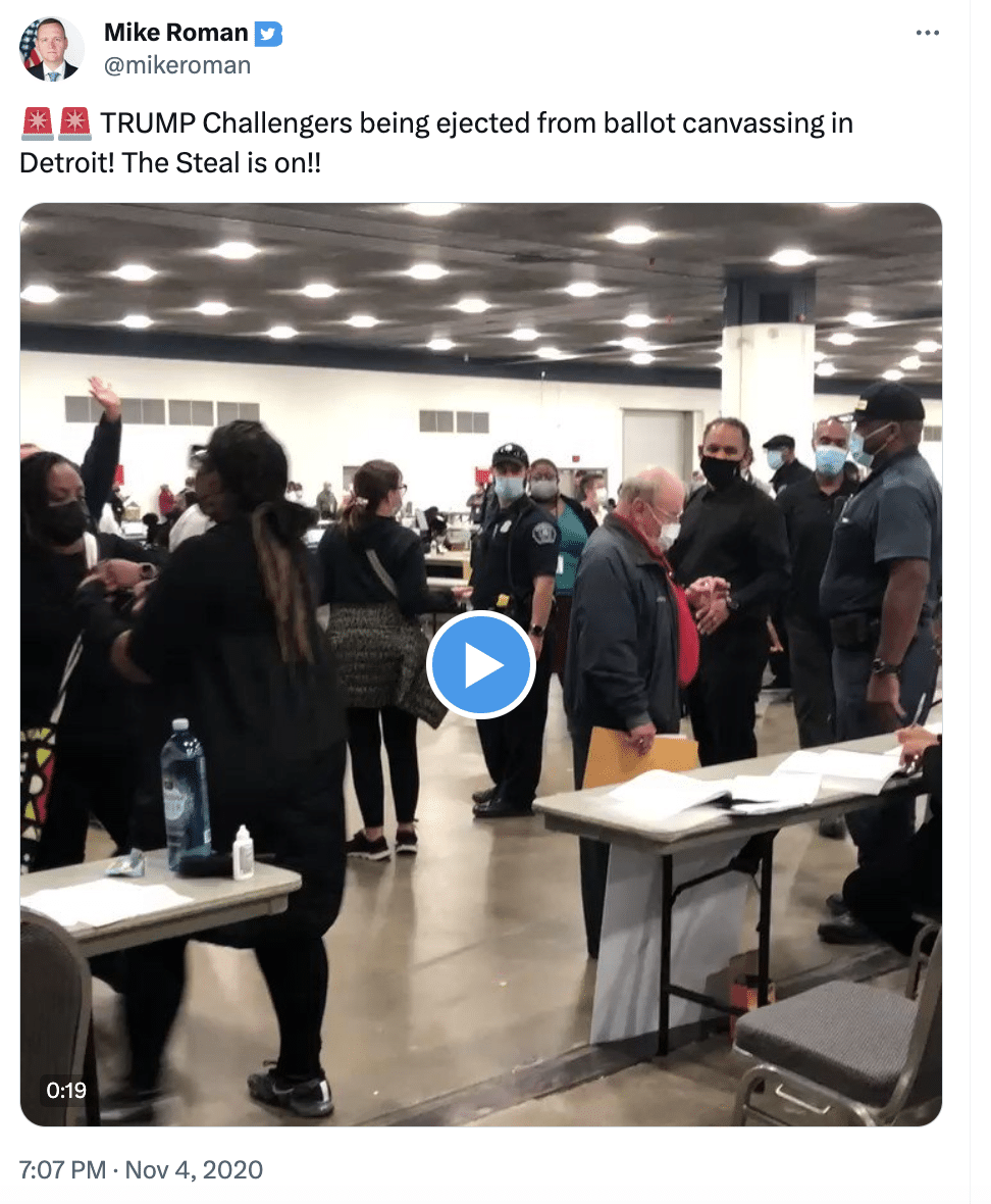 26. On December 10, four days before Biden’s validly ascertained electors were scheduled to cast votes and send them to Congress, Co-Conspirator 1 appeared at a hearing before the Georgia House of Representatives’ Government Affairs Committee. Co-Conspirator 1 played the State Farm Arena video again, and falsely claimed that it showed “voter fraud right in front of people’s eyes” and was “the tip of the iceberg.” Then, he cited two election workers by name, baselessly accused them of “quite obviously surreptitiously passing around USB ports as if they are vials of heroin or cocaine,” and suggested that they were criminals whose “places of work, their homes, should have been searched for evidence of ballots, for evidence of USB ports, for evidence of voter fraud.” Thereafter, the two election workers received numerous death threats.