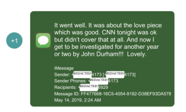 These times are surely not all correct. Durham consistently shared evidence without marking what time zone the evidence reflected. Importantly, some, but probably not all of the FBI Lync messages reflect UTC time; where I was fairly certain, I tried to reflect the time in ET, but in others, the timeline below doesn’t make sense (I’ll keep tweaking it). Some of the emails reflect the Chicago time zone.