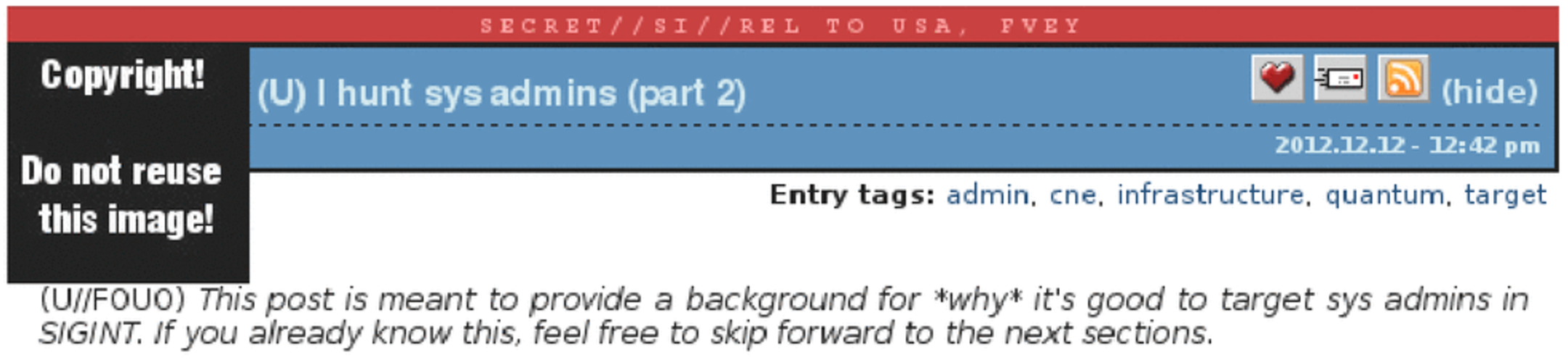 That is, even while screaming “Amber Russian bear OMIGOSH StuxNet!!” the article admitted that this is not StuxNet. This amounts to spies, quite possibly Russian, “hunting SysAdmins,” just like the United States does (of course, the US and its buddy Israel also assassinate nuclear engineers, which for all its known assassinations, Russia is not known to have done).