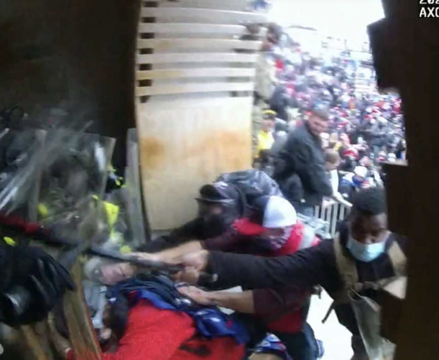 Disorganized Conspiracy: You’ve likely never heard of Ronnie Sandlin and Nate DeGrave, nor should you have. Their conspiracy (DOJ has not yet charged it but has been planning to do so since April) started when Sandlin responded to Trump’s calls for people to attend the event on December 23 and started looking online to join up with others. “Who is going to Washington D.C. on the 6th of January? I’m going to be there to show support for our president and to do my part to stop the steal and stand behind Trump when he decides to cross the rubicon.” They’re an excellent example of a bunch of guys — along with Josiah Colt, who entered into a cooperation agreement against the other two — who got radicalized via a messy stew of ideologies online, armed themselves for insurrection, raised money and traveled to DC together planning for violence, and allegedly engaged in assaults at two key points inside the Capitol that allowed the occupation of the Senate chamber, and in Colt’s case, Mike Pence’s chair itself. Here’s a video of the two (in orange and all black) fighting to get into the Senate just released today: