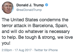 Here’s what Trump has tweeted about the vehicular manslaughter attack in Charlottesville on Saturday.